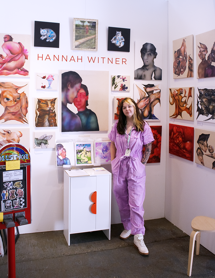 Hannah Witner is a Brooklyn-based multidisciplinary artist, designer, and art director whose work explores the fluid boundaries between the body, environment, and technology. Born in Charlotte, NC, she earned her BFA from Parsons School for Design and has since developed a practice that spans oil painting, airbrush painting, fiber arts, ceramics, digital media, and riso printing, and illustration. Her work evokes the disorienting logic of a fever dream, using biomorphic forms and surreal landscapes to challenge perceptions of identity, femininity, and otherness. She has participated in artist residencies in Hungary, Portugal, France, Serbia, Switzerland, and Iceland.