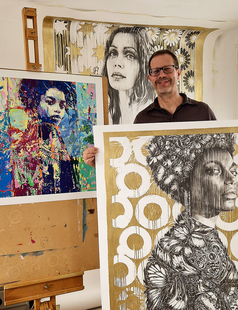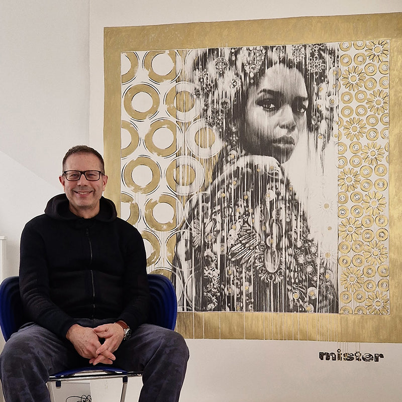 MISTER is a London based Artist whose work pays homage to those sights and sensations which surround him. He takes inspiration from the history of Art, story telling, images of strong characters, and in exploring cultural identity. In expressing colour and narrative, he carefully crafts and weaves together images to produce a striking visual mixed media art form. Initially working in his sketchbook using paint and collage, drawing on imagery and connections to the past, whilst bringing his own painterly qualities and convictions into play. The process of creation owes as