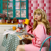 Amber is a striking composition that balances vibrant nostalgia with an undertone of mystery. Set against a playful pink-tiled kitchen, the figure in a pastel dress holds a bright mug, her expression caught between stillness and unease. Everyday objects—orange juice, milk carton, glossy magazine—become symbolic, inviting viewers to consider the hidden narratives beneath polished domestic scenes. The retro palette and cinematic staging create an atmosphere that feels at once familiar and unsettling, bridging fantasy with social commentary.