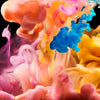 This image showcases a mesmerizing swirl of colorful smoke or ink suspended in liquid, captured against a black background. The composition features flowing, cloud-like plumes in shades of teal, turquoise, and hints of white, blending seamlessly with each other to create an ethereal, almost nebula-like effect. The soft, smooth textures and delicate tendrils of the smoke give it a dynamic and fluid appearance, while tiny white specks scattered throughout add a sense of depth and dimension. The overall aesthetic is abstract and otherworldly, evoking a sense of motion and transformation.
