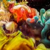 This image showcases a mesmerizing swirl of colorful smoke or ink suspended in liquid, captured against a black background. The composition features flowing, cloud-like plumes in shades of teal, turquoise, and hints of white, blending seamlessly with each other to create an ethereal, almost nebula-like effect. The soft, smooth textures and delicate tendrils of the smoke give it a dynamic and fluid appearance, while tiny white specks scattered throughout add a sense of depth and dimension. The overall aesthetic is abstract and otherworldly, evoking a sense of motion and transformation.