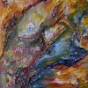 "Delos" is an original expressionist oil painting that depicts the spirit of the small island in the Cyclades near Mykonos with historic and mythological significance.