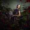 In Freedom, Lidia Vives creates a scene rich in symbolism and cinematic allure. A woman stands among lush foliage, holding an open birdcage as vivid red feathers scatter through the air. The imagery evokes themes of release, transformation, and the fragile beauty of letting go. The interplay of deep greens, striking reds, and the gold accents of her gown creates a dramatic palette that heightens the sense of movement and liberation.