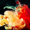 This image showcases a mesmerizing swirl of colorful smoke or ink suspended in liquid, captured against a black background. The composition features flowing, cloud-like plumes in shades of teal, turquoise, and hints of white, blending seamlessly with each other to create an ethereal, almost nebula-like effect. The soft, smooth textures and delicate tendrils of the smoke give it a dynamic and fluid appearance, while tiny white specks scattered throughout add a sense of depth and dimension. The overall aesthetic is abstract and otherworldly, evoking a sense of motion and transformation.
