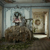 House Of Vice draws the viewer into an opulent yet unsettling interior where theatrical fantasy and haunting decay collide. The figure, cloaked in a dramatic gown of layered fabric and masked in black, becomes both performer and apparition within a grand but timeworn setting. Ivy creeps across tiled floors, echoing themes of nature reclaiming space and the inevitability of transformation.