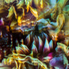 Metamorphosis I captures the delicate yet powerful transition of natural forms, rendered with an intensity that feels both intimate and cosmic. Estrada’s close, layered view of petals reveals a tapestry of textures, from velvety folds to luminous edges, where light and shadow collide in waves of green, gold, and violet. The image radiates movement, as if the flowers themselves are caught in a state of becoming, suspended between dissolution and rebirth.