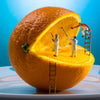 Pac-Man – Scale & Polish by David Gilliver is a limited edition photographic print on Olmec Matte Photo Paper 230gsm, available in 12 × 18 in, 24 × 16 in, 30 × 20 in, 36 × 24 in, and 45 × 30 in. Created in 2021, this playful and surreal composition transforms a sliced orange into a gleaming stage where miniature figures work carefully to polish its interior. The piece fuses humor with pop culture references, evoking the nostalgic arcade icon Pac-Man while exploring ideas of scale, labor, and transformation. Bright, vivid, and meticulously detailed, it captures the imagination while inviting collectors to see the extraordinary hidden within the everyday.