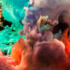 This image showcases a mesmerizing swirl of colorful smoke or ink suspended in liquid, captured against a black background. The composition features flowing, cloud-like plumes in shades of teal, turquoise, and hints of white, blending seamlessly with each other to create an ethereal, almost nebula-like effect. The soft, smooth textures and delicate tendrils of the smoke give it a dynamic and fluid appearance, while tiny white specks scattered throughout add a sense of depth and dimension. The overall aesthetic is abstract and otherworldly, evoking a sense of motion and transformation.