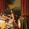 Rapunzel reimagines the timeless fairytale through a sumptuous contemporary lens. Surrounded by roses, ripe fruit, and draped fabrics, the figure becomes both muse and myth, embodying beauty, vulnerability, and abundance. Her cascading hair evokes the archetype of Rapunzel while the rich still-life elements echo the traditions of classical painting, infusing the work with allegory and sensuality.