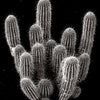 This striking silver gelatin print captures a cactus cluster in meticulous black and white detail, every thorn illuminated like a constellation against the dark backdrop. The medium emphasizes texture and form, transforming the plant into both sculpture and symbol.