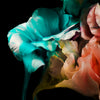 Tainted Love is a striking study in contrasts, where delicate petals seem to dissolve into shadows and light. Layers of turquoise, coral, and golden tones emerge against the depth of black, creating an atmosphere that feels both intimate and cinematic. The composition suggests the fragility of beauty alongside the intensity of passion, making this piece resonate with themes of desire, transformation, and vulnerability.
